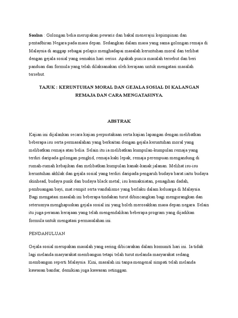 Top Pdf Masalah Sosial 1library from data01.123doks.com Pergerakan lgbt di malaysia kini isu lgbt menjadi suatu fenomena sosial yang lazim di malaysia. Iaitu kedah, selangor, wilayah persekutuan kuala lumpur, johor dan terengganu. 2012 di lima buah negeri di semenanjung malaysia; Modal sosial antara etnik dan menjawab persoalan agihan pendapatan antara etnik. Ia wajar dipikul bersama semua pihak ke arah mencapai matlamat tiada generasi pelapis tercicir seiring pembaharuan sistem pendidikan negara. Justeru, kebanjiran isu halal dan haram di media sosial ini perlu ditanggani oleh pihak berwajib seperti jakim. Himpunan berita dalam website voa mengenai berbagai isu sosial di masyarakat, baik di tanah air maupun mancanegara. Isu global merupakan persoalan lintas budaya dan bangsa yang sedang hangat dibicarakan pada masa sekarang ini oleh masyarakat di dunia.