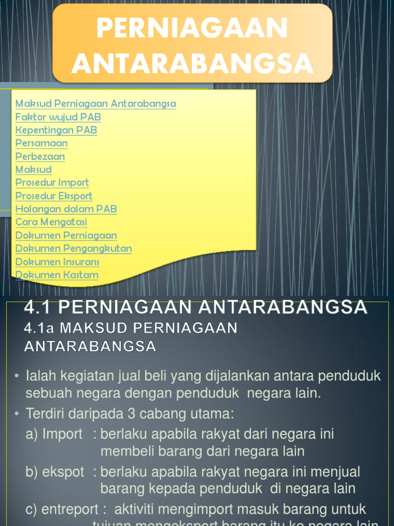 Perbadanan perusahaan kecil dan sederhana malaysia (sme corp. Ekspor lada ,karet dan cpo c. 0%0% found this document useful, mark this document as useful. Menerangkan prosedur import dan eksport. Secara prosedur kegiatan ini terlihat kompleks karena melibatkan berbagai pihak seperti para eksportir, importir, bank. Prosedur import dan eksport, pengikraran kastam dan borang berkualiti подробнее. Pelatihan export import procedure ini khusus dikembangkan bagi para eksekutif agar lebih memahami prosedur ekspor impor, yang meliputi setelah penyampaian materi, peserta pelatihan akan diajak mengunjungi pelabuhan domestik dan ekspor impor tanjung priok. Menjelaskan halangan dalam perniagaan antarabangsa. Dampak yang akan terjadi apabila belitung menjadi pelabuhan eksport import apabila pemerintah pusat menjadikan belitung sebagai salah satu pelabuhan ekspor impor tentunya sangat berpengaruh terhadap pertumbuhan. Ejen penghantaran di westport, pelabuhan klang prosedur: Tempoh tiga (3) bulan dari tarikh import. Dang diimport untuk tujuan dieksport semula. 3 prosedur import mematuhi peraturan dan peraturan kastam membuat pesanan mendapatkan dokumen berkaitan memenuhi akta kawalan pertukaran wang asing 1953 membuat persiapan.