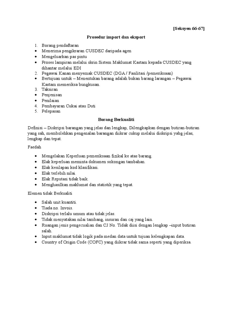 Prosedur Import Dan Eksport Kastam / Huraikan prosedur pengistiharan kastam 3.