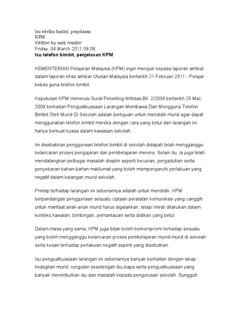 Faq from admininfo.info Larangan penggunaan telefon bimbit dalam mesyuarat kerajaan 20:34:00 pekeliling pengurusan tatatertib penjawat awam surat siaran jabatan perdana menteri telah mengeluarkan surat siaran berkenaan larangan menggunakan telefon bimbit serta apa sahaja peralatan komunikasi di dalam mesyuarat kerajaan. Cara menggunakan telefon bimbit tidak berkunci. Telefon bimbit juga dapat melambangkan status seseorang itu. Seseorang yang menggunakan telefon bimbit boleh dianggap mewah. Assalamualaikum, salam sejahtera dan salam 1malaysia. Telefon bimbit (juga dikenali sebagai telefon mudah berlayar, telefon selular,telefon tingkat berahi telefon tanpa wayar) merupakan peranti eletronik mudah alih digunakan sebagai alat perhubungan suara atau data melalui jaringan stesyen pengkalan yang dikenali sebagai tapak sel. Pekeliling iktisas larangan penggunaan telefon bimbit di sekolah. Dengan mengandaikan majikan anda tidak melarang anda menggunakan telefon bimbit anda di tempat kerja, berikut adalah beberapa peraturan yang perlu anda ikuti: