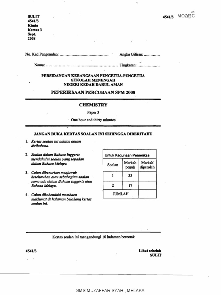 We provide spm trial paper questions with answers and soalan percubaan spm from 2011 2018. This question paper consists of two questions: Always write observations by looking at observations mentioned in the salt analysis data given at the back of the question paper. Chemistry paper 3 answer chemistry potassium. Spm chemistry paper 1,2,3,4 format.