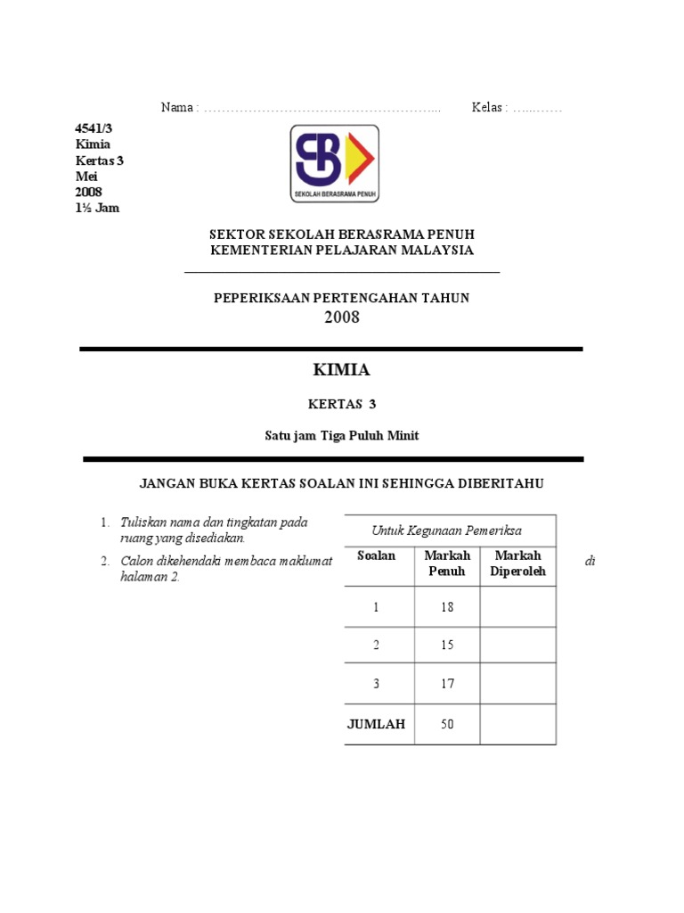 Who to contact for spm trial paper website? Chemicals in chemistry will come labelled with pictograms, which inform you of. We will be more than willing to guide you on your questions. Dapat mencatat suhu awal, suhu tertinggi dan perubahan suhu dengan tepat. This question paper consists of two questions: You can find all caie chemistry igcse (0620 and 0971) paper 3 past papers and mark schemes below. You can create one as well, really easily.get started. Spm chemistry paper 1,2,3,4 format. 5 part 3 past spm question scoring scoring spm paper 3 2006 4 chemistry paper 3 4541/3 question no. Archive for the ' spm state papers ' category. Analysis of chemistry paper 3 2011johor• rusting• titration in neutralization• plan a laboratory experiment to investigate the different pairs of metal produce different voltage of a voltaic cell.kedah• position of metals in the reactivity series• plan a laboratory experiment to investigate the role of water. 1 to 2 structured questions and 1 essay question. 6 part 3 5 spm 2006 question no.
